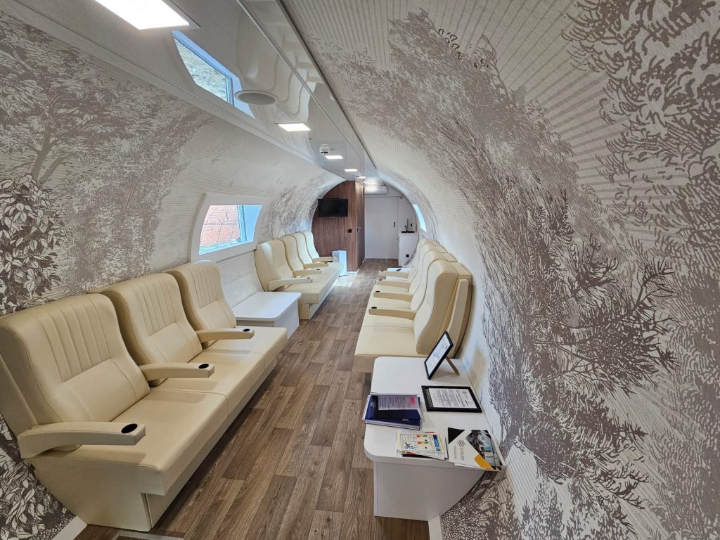 Innenansicht einer Normobarkammer mit Liegesitzen und LED-Beleuchtung